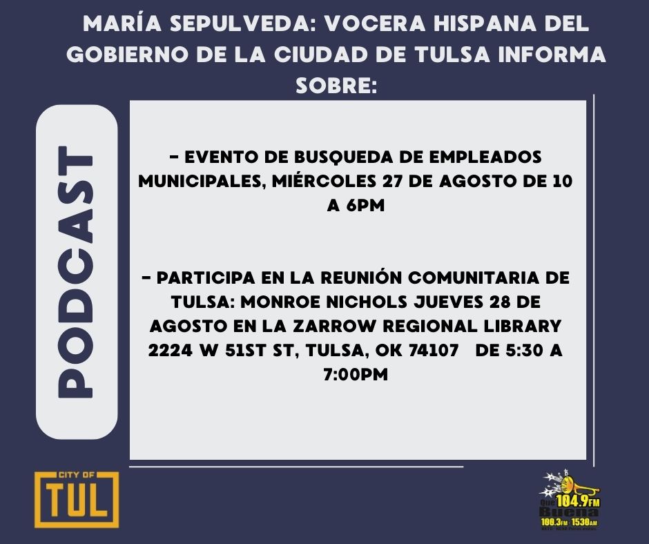 María Sepulveda, vocera hispana del Gobierno de la Ciudad de Tulsa, compartió información importante en nuestro podcast: 25/08/2025 LEER MÁS »