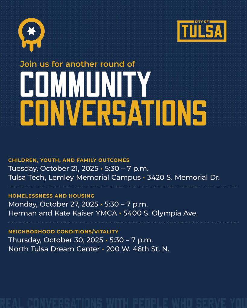 La próxima cita será este martes 21 de octubre de 2025, de 5:30 a 7:00 p.m. en Tulsa Tech, Lemley Memorial Campus (3420 S. Memorial Dr.), donde se abordará el tema “Children, Youth, and Family Outcomes” — un espacio para compartir ideas y escuchar cómo juntos podemos mejorar el bienestar de nuestras familias y comunidades. 👨👩👧👦✨